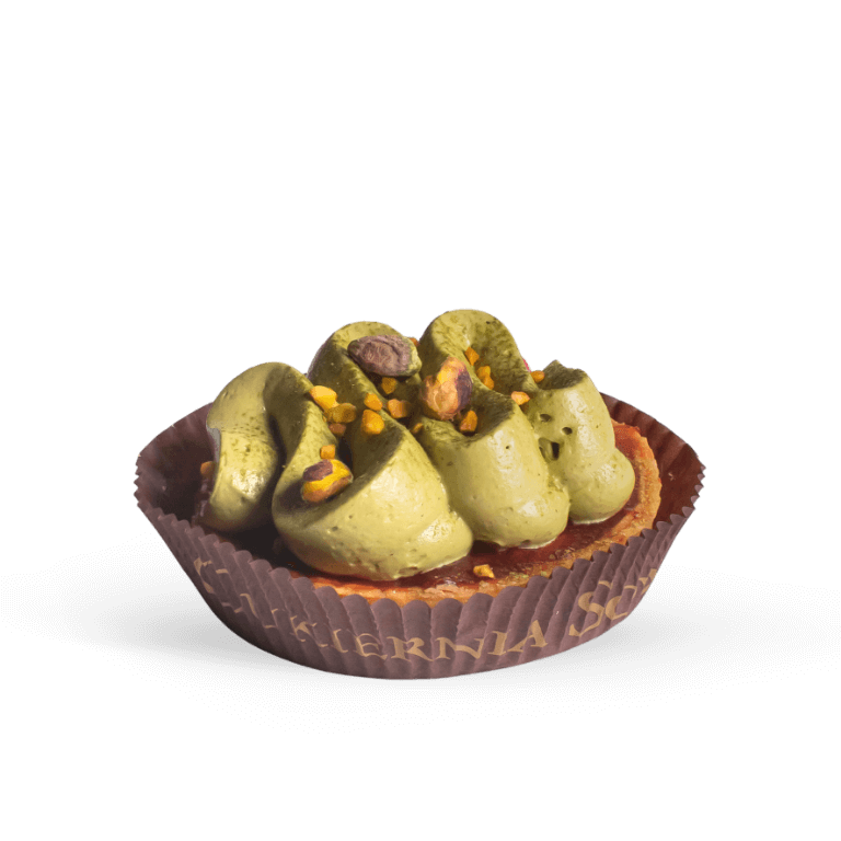 Kruchy korpus z nadzieniem truskawkowym i kremem pistacjowym. Bez dodatku cukru. Zawiera naturalnie występujące cukry. Zawiera substancję słodzącą.