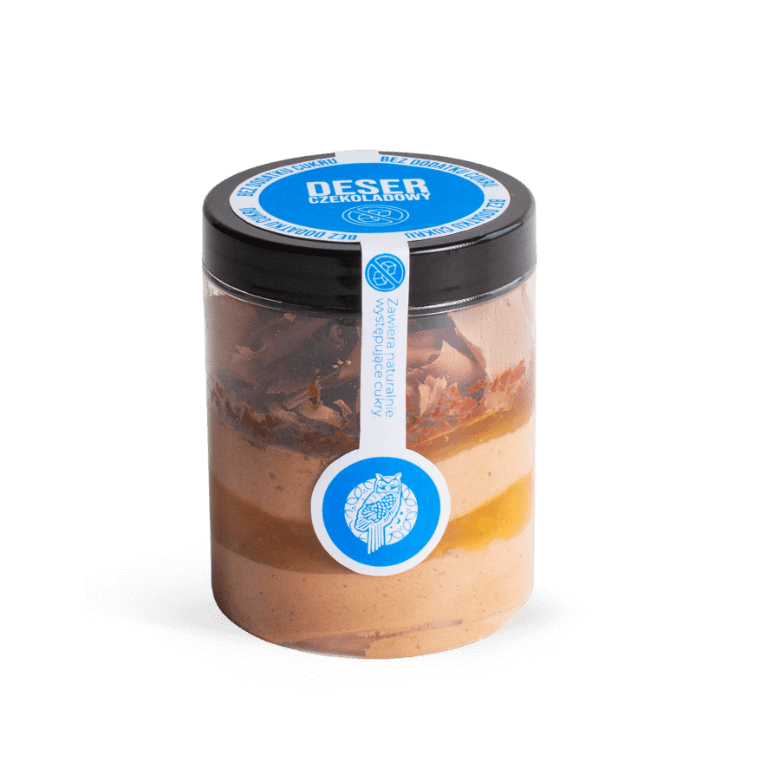 Puszysty ciemny biszkopt z aksamitną masą serową, wykończony polewą kajmakową z orzeszkami arachidowymi. Bez dodatku cukru. Zawiera naturalnie występujące cukry. Zawiera substancję słodzącą.