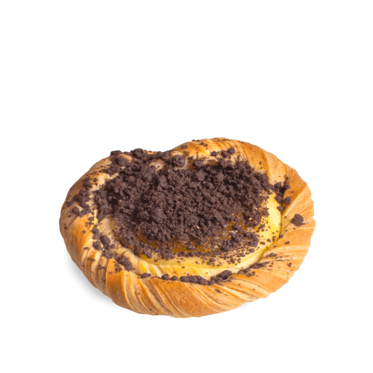Puszyste ciasto drożdżowe z kruszonką kakaową, budyniem i nadzieniem ananasowo-brzoskwiniowym. Bez dodatku cukru. Zawiera naturalnie występujące cukry. Zawiera substancję słodzącą.