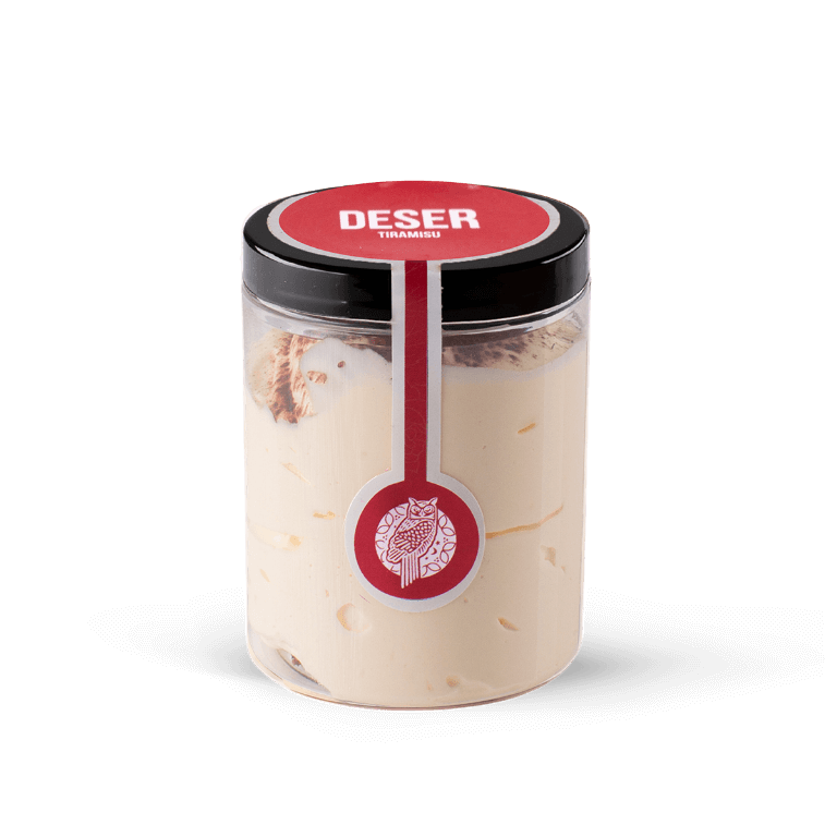 Krem na bazie serka mascarpone, z biszkoptem o smaku czekoladowym nasączonym ponczem kawowym z dodatkiem likieru Amaretto.