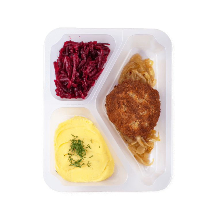 Tradycyjny kotlet mielony w towarzystwie aksamitnego puree i buraczków. Domowy, syty lunchbox w idealnej równowadze smaków i tekstur.